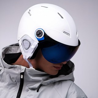 브릭스 일체형 스키 헬멧 스노우보드 바이저 고글형 겨울스포츠, 1개, 화이트(레드렌즈)
