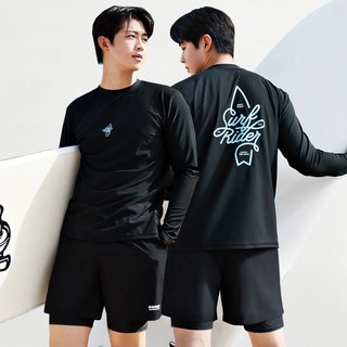 써핏 오버핏 커플 반집업 래쉬가드 상하의 세트 SFRC011, 블랙