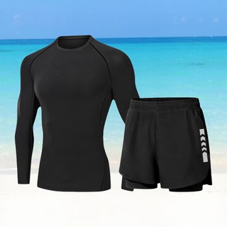 라틱 남자 여자 래쉬가드 상하의 세트 수영복 루즈핏 비치웨어, 블랙