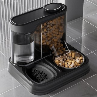 Star Fun 대용량 고양이 개 자동급수기 먹이 세트, 1개, 검은색, 1.5L