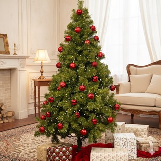 뉴욕 클래식 풀세트 크리스마스 트리 (트리+오너먼트+지네전구), 레드