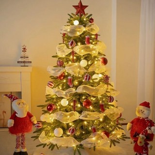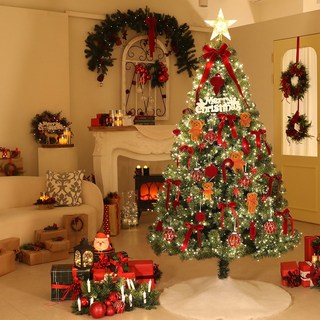 크리스마스 갓성비 세트트리 트리+오너먼트+별토퍼+트리스커트, 골드 + 레드, 150cm