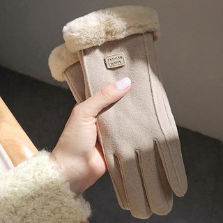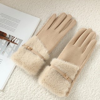제나온 여성 겨울 스웨이드 퍼 터치 장갑