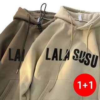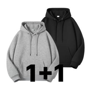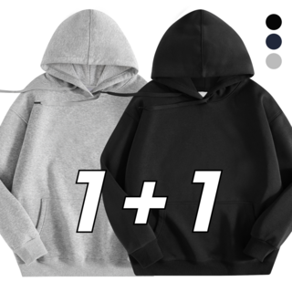 1+1 루즈핏 후드 스웨트셔츠 남녀공용 봄 가을 단색 캐주얼 스웨트셔츠 재킷
