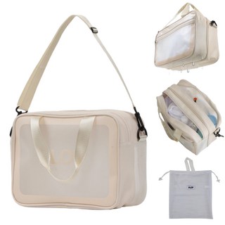 플랍 분리형 수영가방 방수 메쉬 수영복 수영장 생존 목욕 가방 탈부착크로스, 아이보리