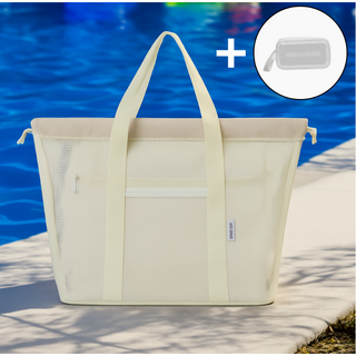 이드니 물빠지는 메쉬 목욕 수영 가방 + 방수 파우치 증정, 베이지