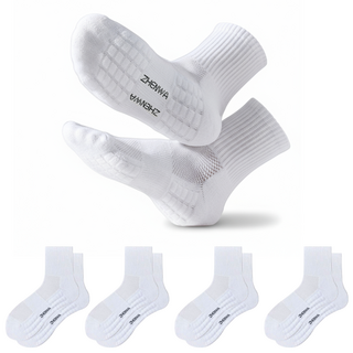 더메이크 쿠션 중목 남성 스포츠 양말, 5개, 화이트