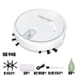 HU LULU 무선 스마트 로봇청소기 자동진공청소 물걸레 찜질 기능 USB충전, 화이트