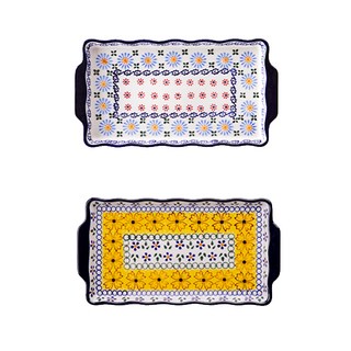 메종오브제 직사각접시 2종 세트, 블루데이지 + 프리지아, 단품, 1세트