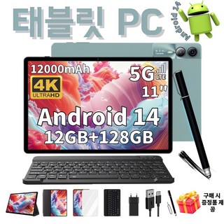 11인치 태블릿 PC 안드로이드14 12GB RAM 128GB SSD 4K(3840*2160) 12000mAh Wi-Fi 사무/교육/게임/미디어감상, 초록색