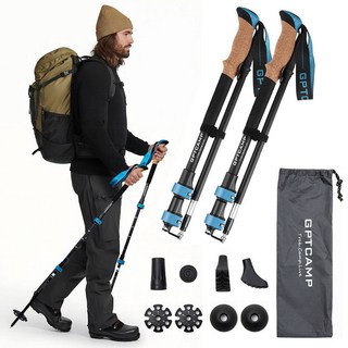 GPTcamp HDC3 카본 초경량 접이식 등산 스틱 트레킹 폴, 1세트, 블랙