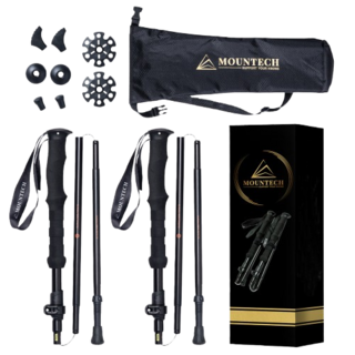 마운테크 초경량 두랄루민 접이식 5단 남성 여성 등산스틱, 2개, 블랙