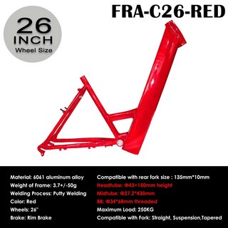 프레임 전기자전거 ATV 팻바이크 36V250W 뼈대 자전거프레임 설상차 MTB, 레드 프레임(사진참조, 프레임만)