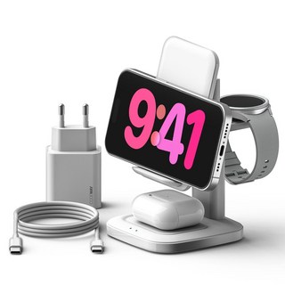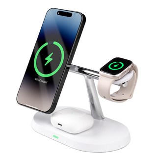 만렙 3in1 + 1 애플워치 아이폰 맥세이프 무선충전기 거치대, 화이트, 1개