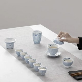 핸드 페인팅 쿵후 티 세트 나비와 꽃 테마 중국 차 성인용 가이완 공푸 세라믹 다도 애호가를 위한 선물 Hermit Life 11st_amz 166024 7511317569, 핸드 페인팅 쿵후 티 세트, 나비와 꽃 테마 중국 차