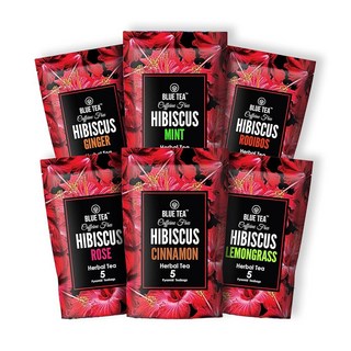 블루 티 – 창립자가 가장 좋아하는 모듬 선물 세트 | 8가지 품종 40가지 수 피라미드 식물 기반 티백 카페인 프리 허브 샘플러 버라이어티 팩 그와 그녀를 위한, 10 Hibiscus Assorted Gift, 6 Flavour Tea (30 Tea Bags)